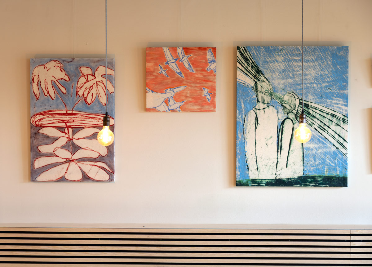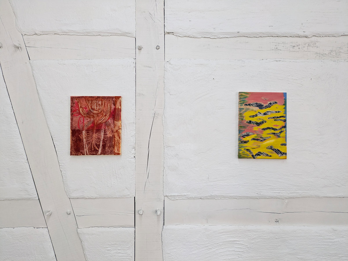 The exhibition layers and layers and … brings monotype and painting into a dialogue about layering, process, and the perception of nature. Lines, rubbings, and color fields interact with overlapping color spaces and large-scale image surfaces. Landscape appears less as a concrete view and more as an atmosphere—shaped by light, color, movement, and time. Between figuration and abstraction, plant forms, natural elements, and human figures emerge, offering multiple interpretations. The works invite viewers to slow down, look closely, and discover the layers from which impressions arise.
